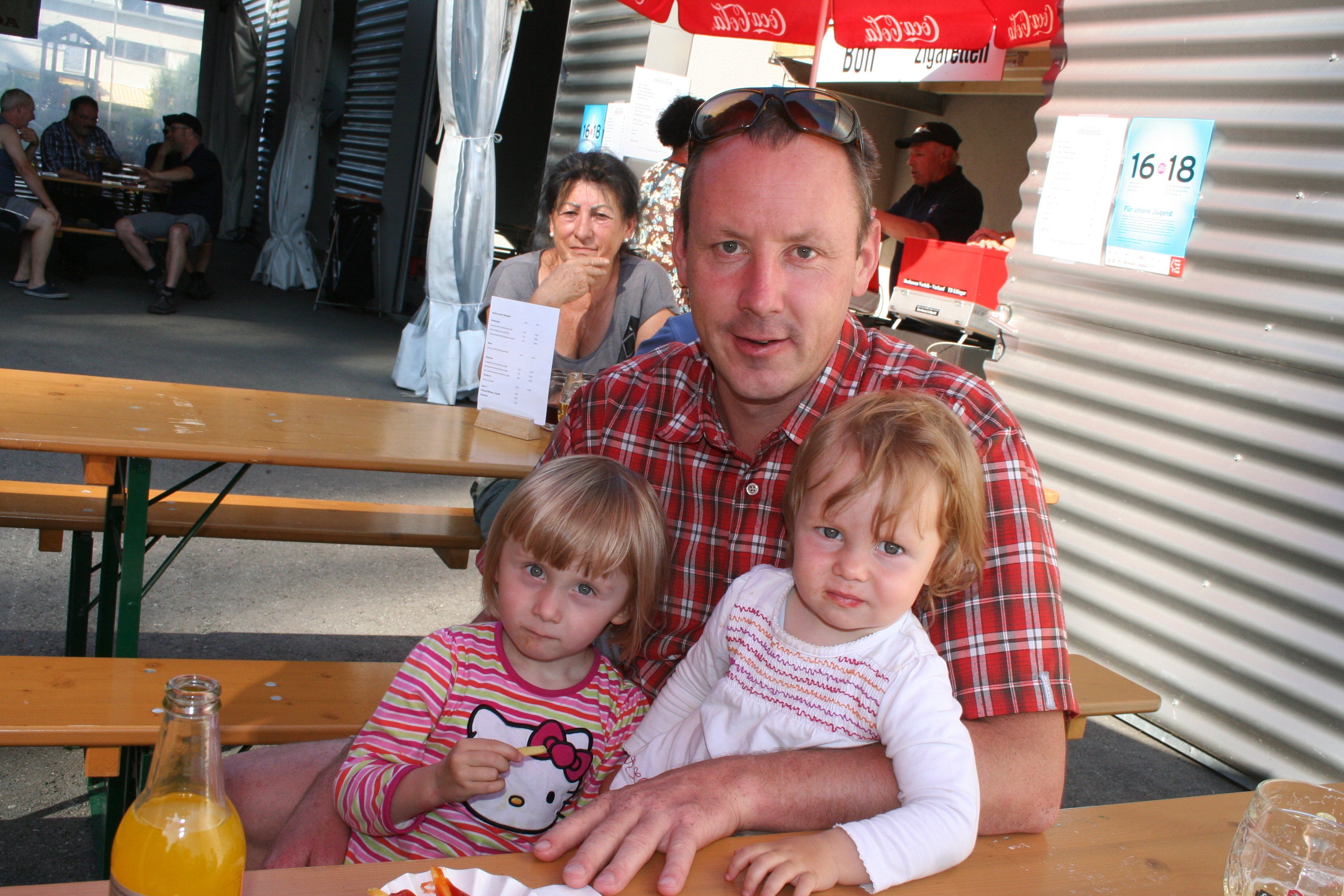 Pauline und Annika mit Papa Oliver.