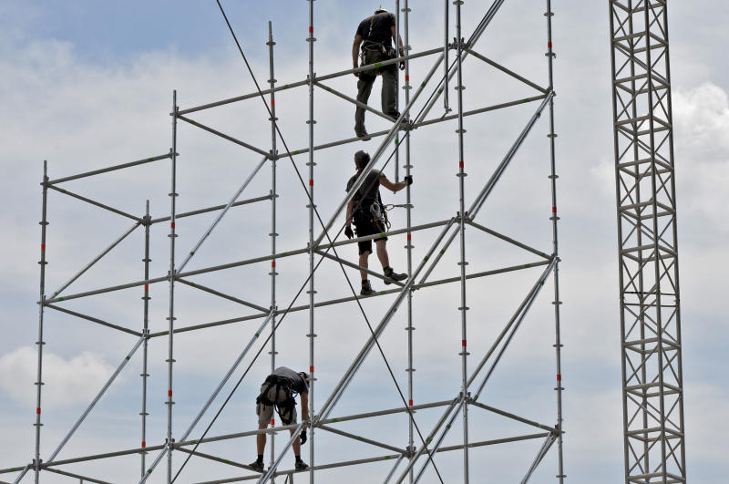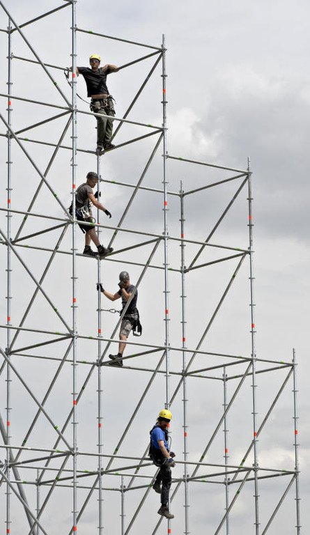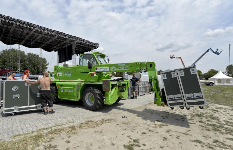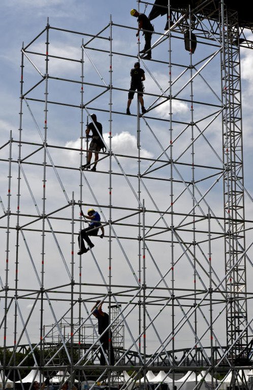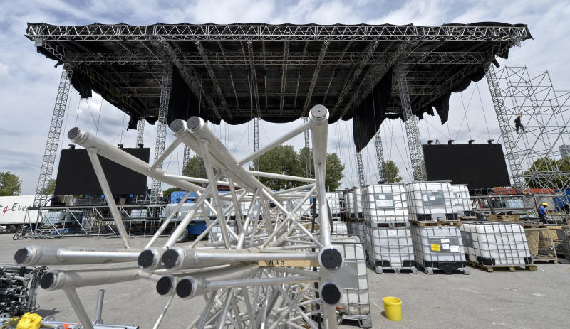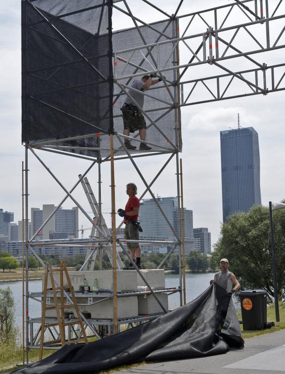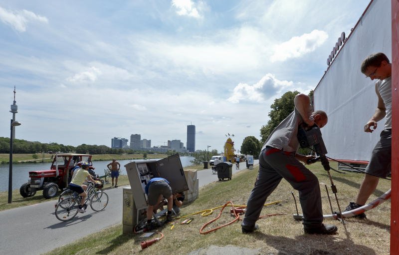 Aufbauarbeiten für das Donauinselfest 2014