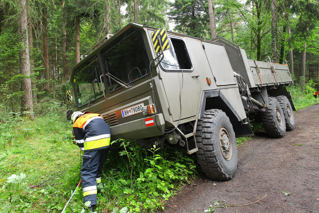 Bundesheer-Lkw bleibt hängen