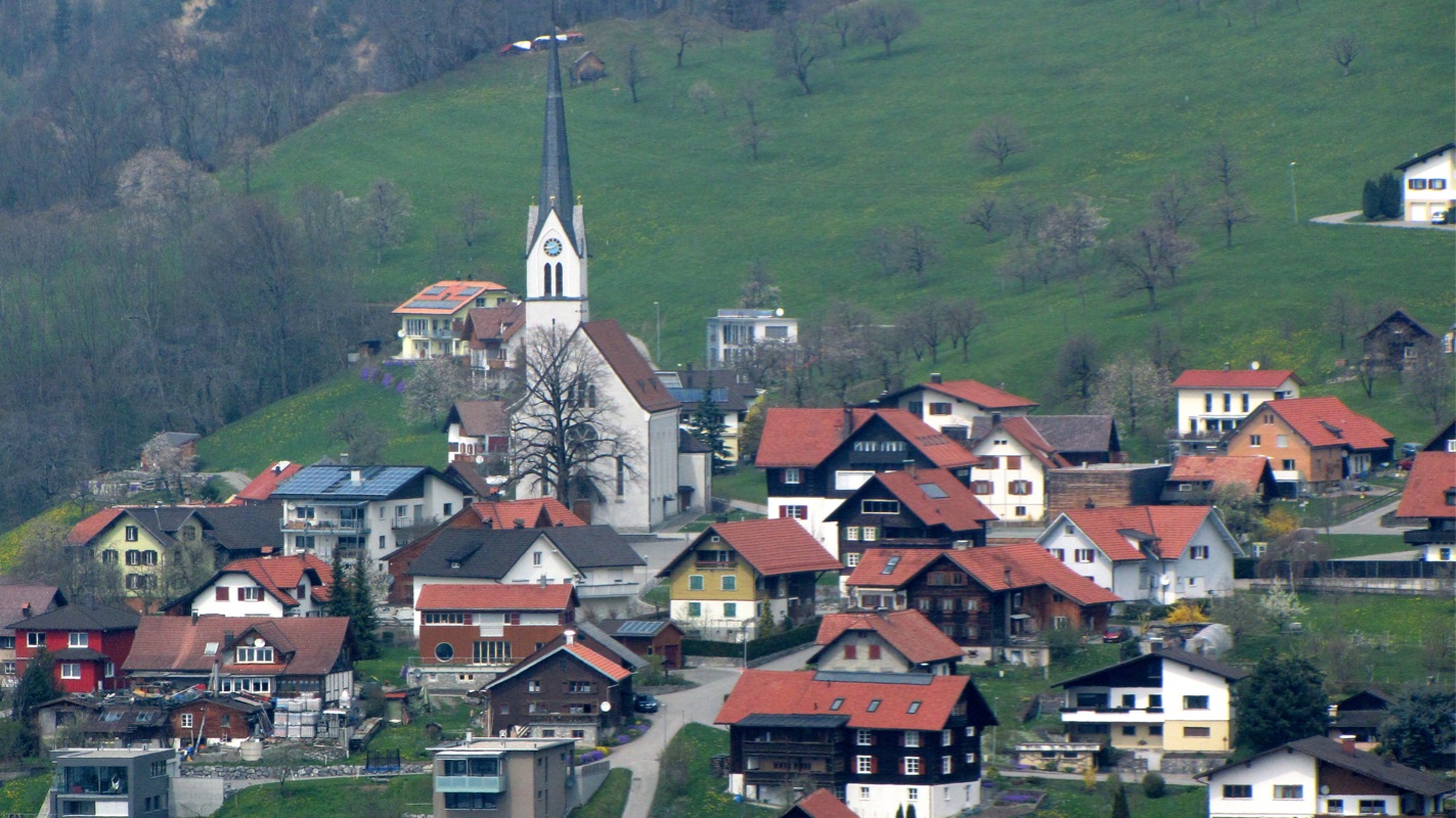schon von weitem sieht man das auf 817m hoch gelegene Bergdorf Fraxern