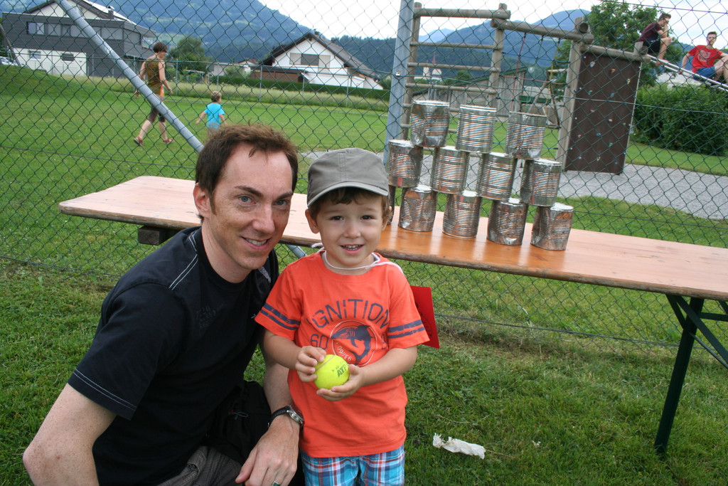 Papa Thomas mit Marian beim "Dosenschießen".