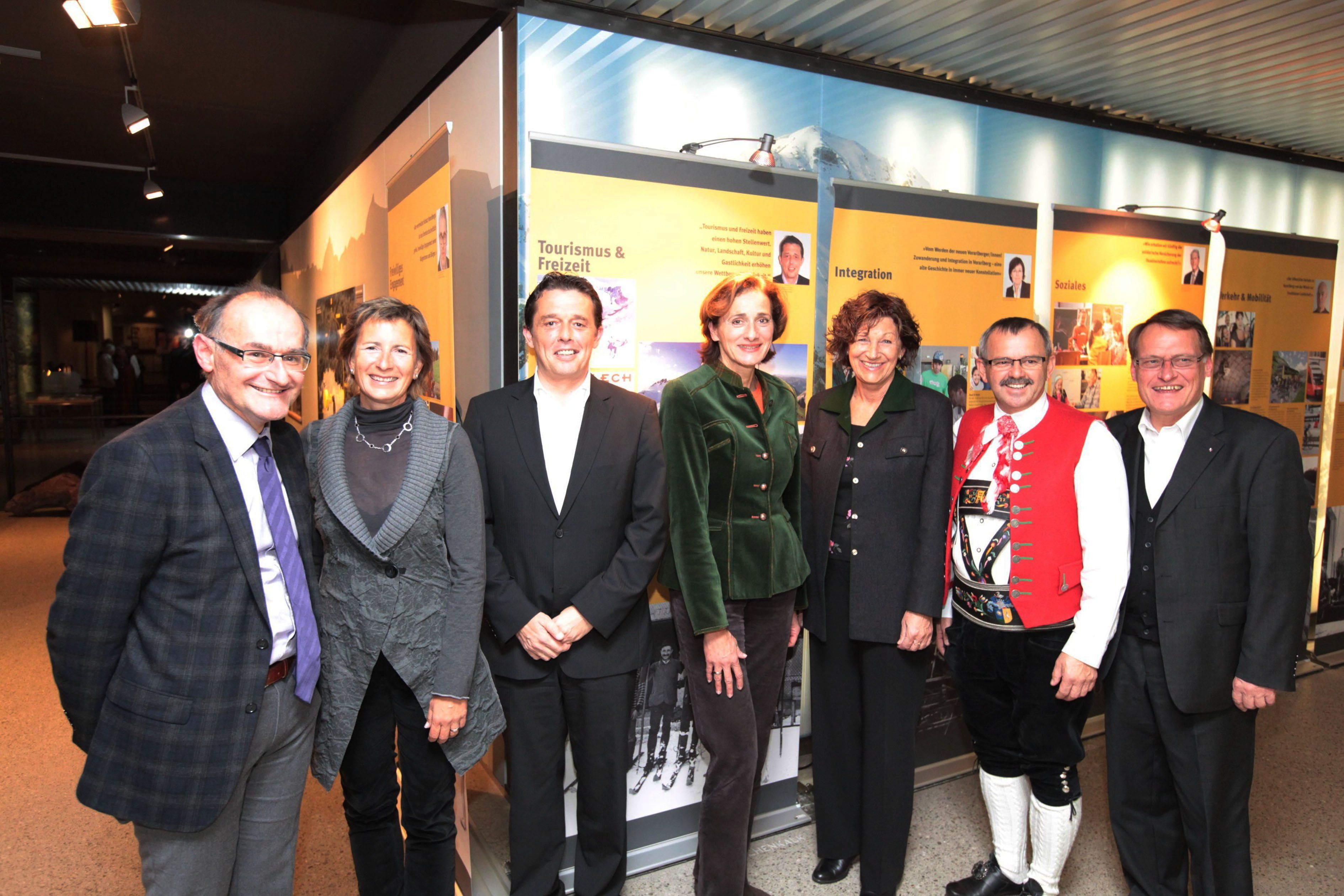 Regionenveranstaltung „150 Jahre Landtag“ zum Thema Tourismus am 21. Oktober 2011 in Hirschegg. Von links: Peter Bußjäger, Gabriele Nußbaumer, Hans-Peter Metzler, Bernadette Mennel, Beate Gruber, Bgm. Andi Haid, Ernst Hagen