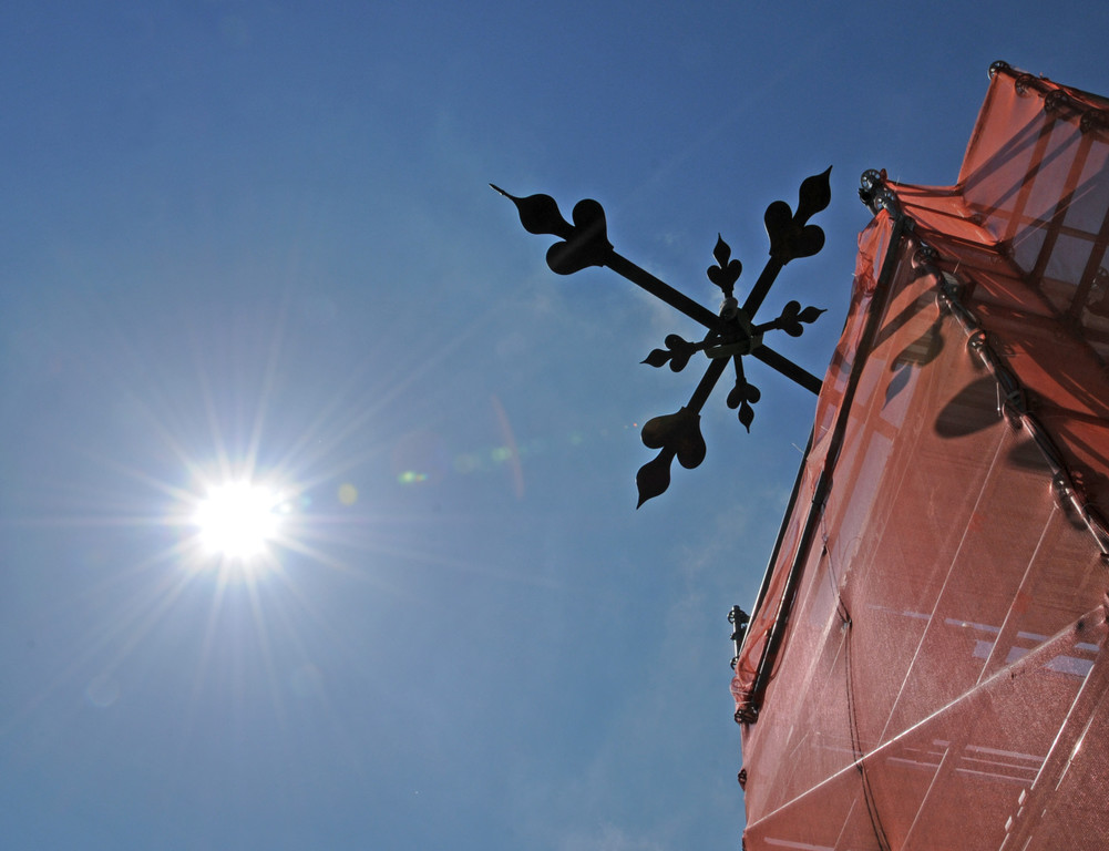 Kreuz und Kugel vom Kirchturm abgenommen