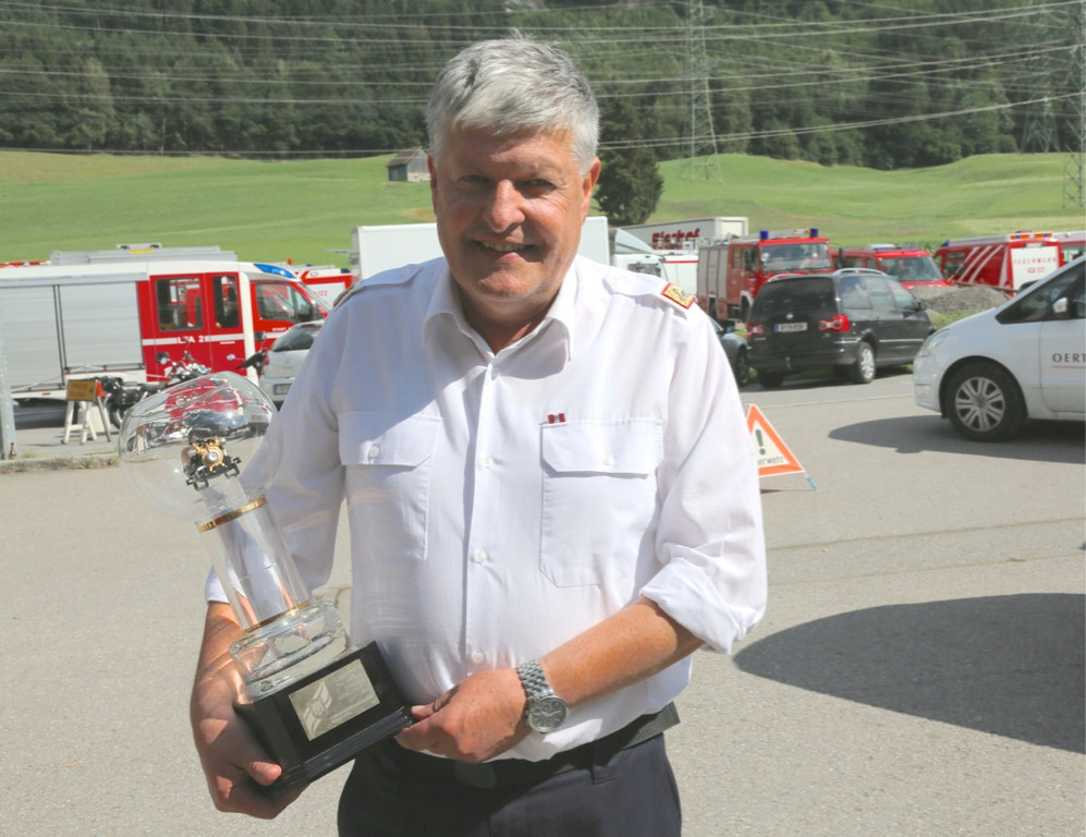 Bezirkskommandant Manfred Morscher mit der „Goldenen Pumpe“
