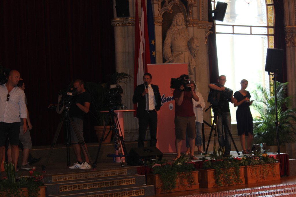 Manner versucht Weltrekord im Wiener Rathaus