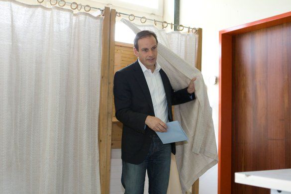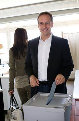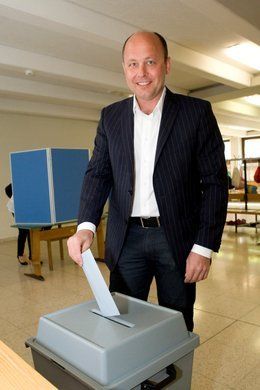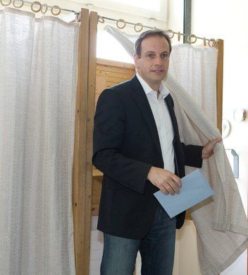 Egger beim Verlassen der Wahlkabine.