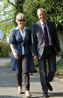 LH Sausgruber mit Gattin Ilga auf dem Weg zum Wahllokal.