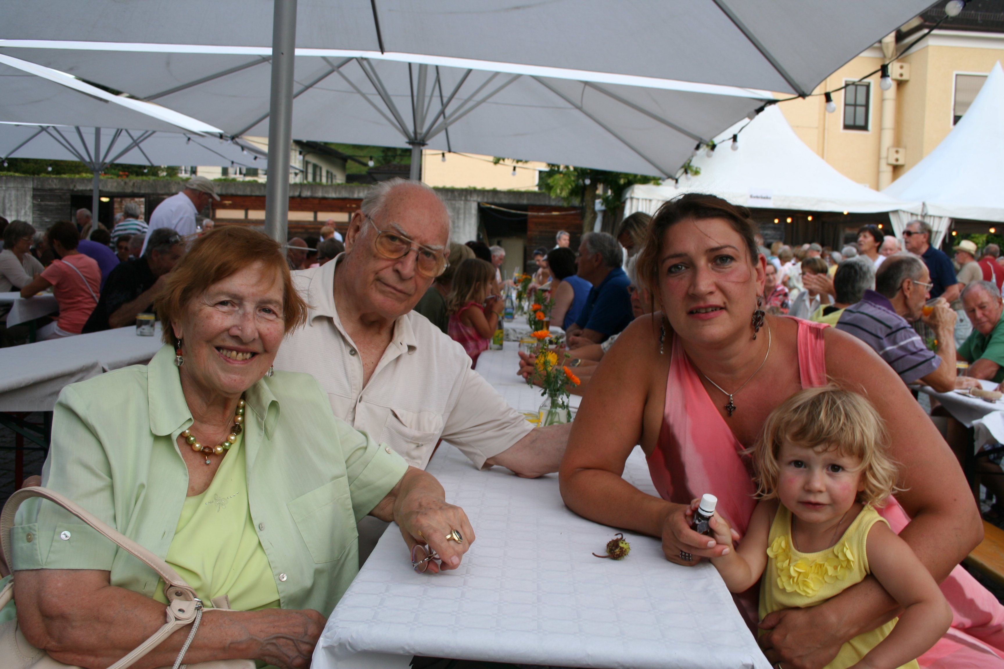 Oma Brunhilde, Opa Joser und Mama Ulrike mit Julia.