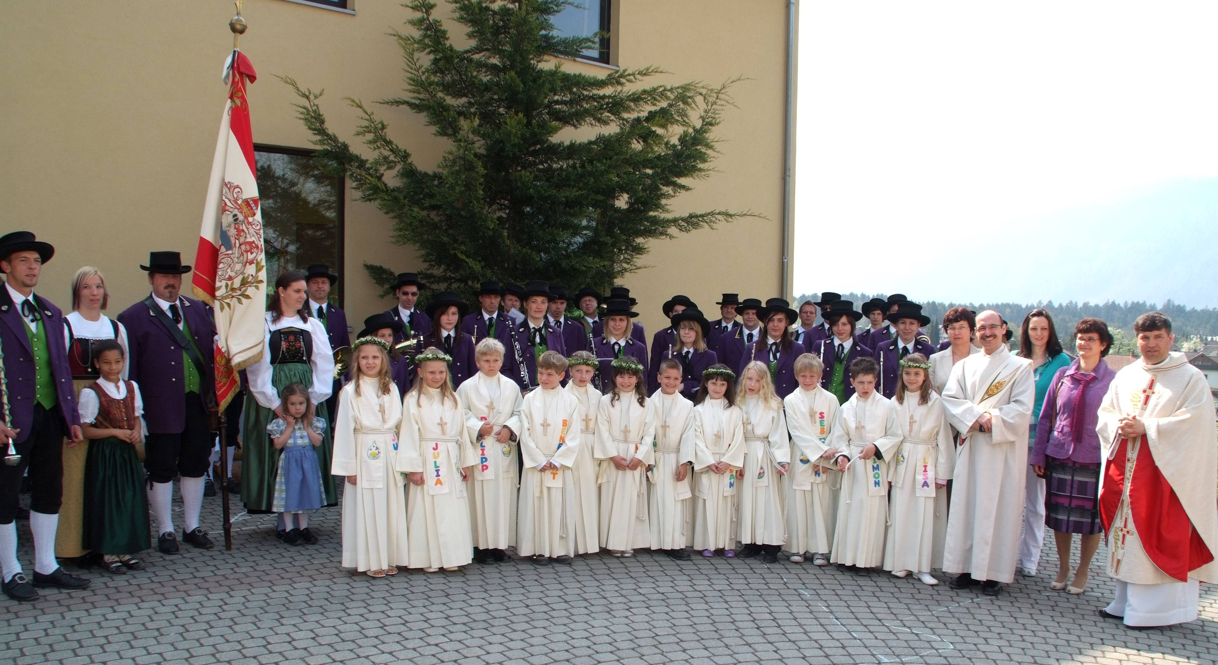 Der Musikverein Thüringen geleitete die Erstkommunionkinder zur und von der Kirche.