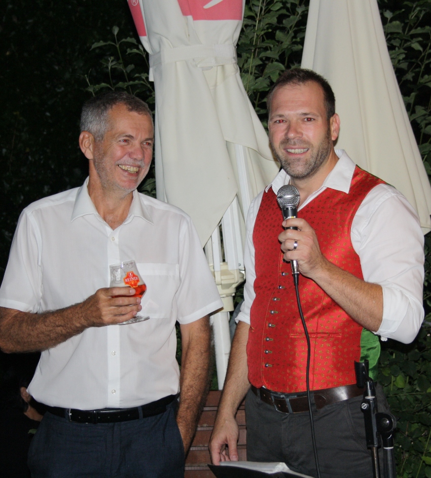 Festwirt Philipp Reiner und Organisator Robert Sturn vom Wirtschafts- und Tourismusausschuss der Gemeinde freuten sich mit den „Bierblosn“ über den großartigen Erfolg.