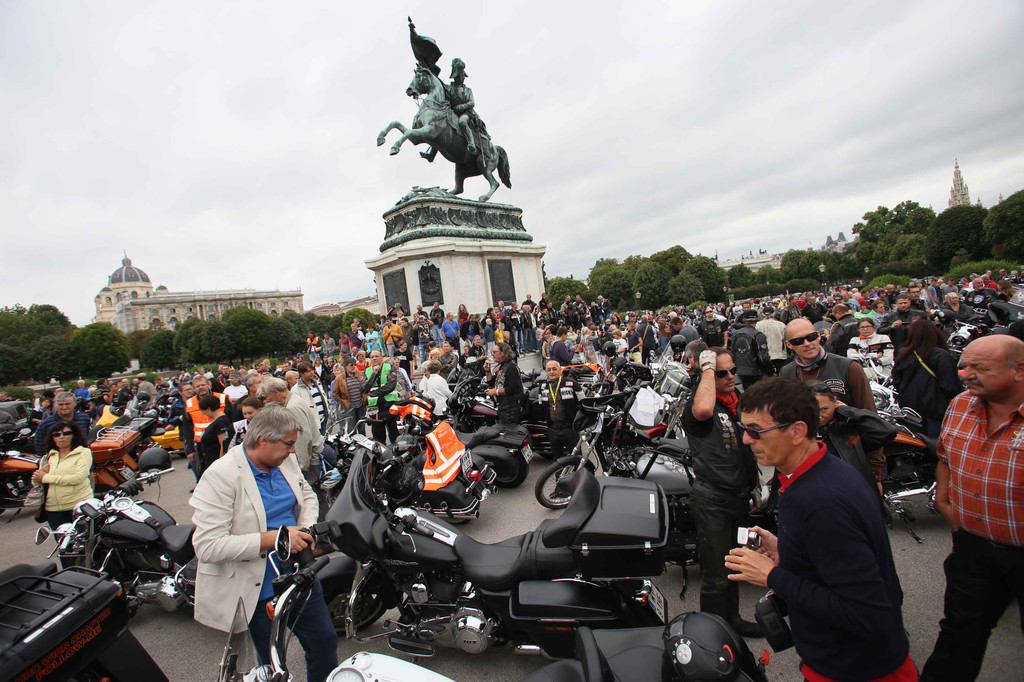 Charity-Tour: Hunderte Harleys am Wiener Heldenplatz