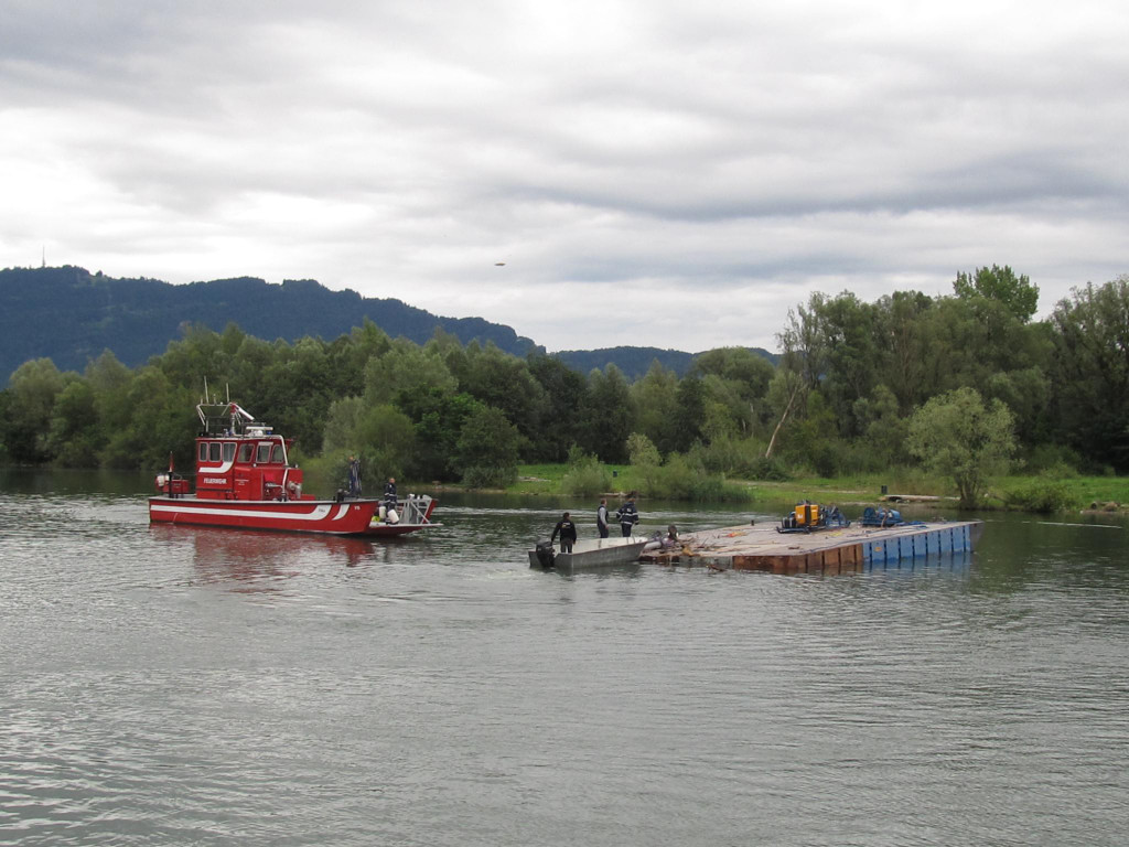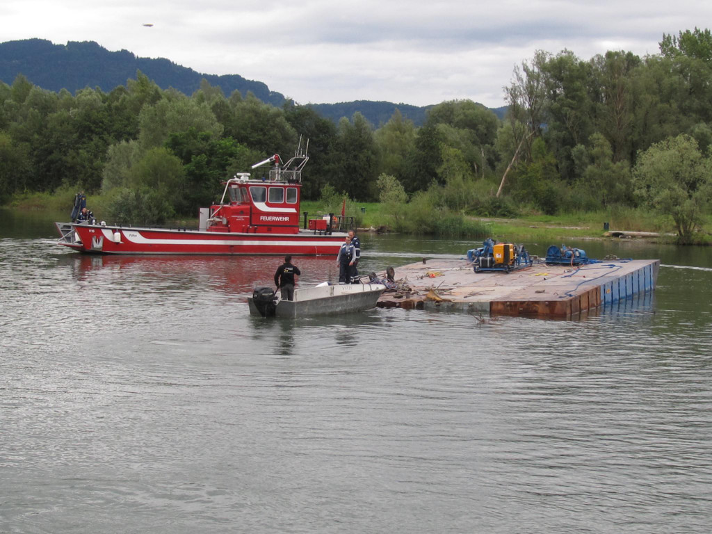 40-Tonnen-Ponton wird abgeschleppt