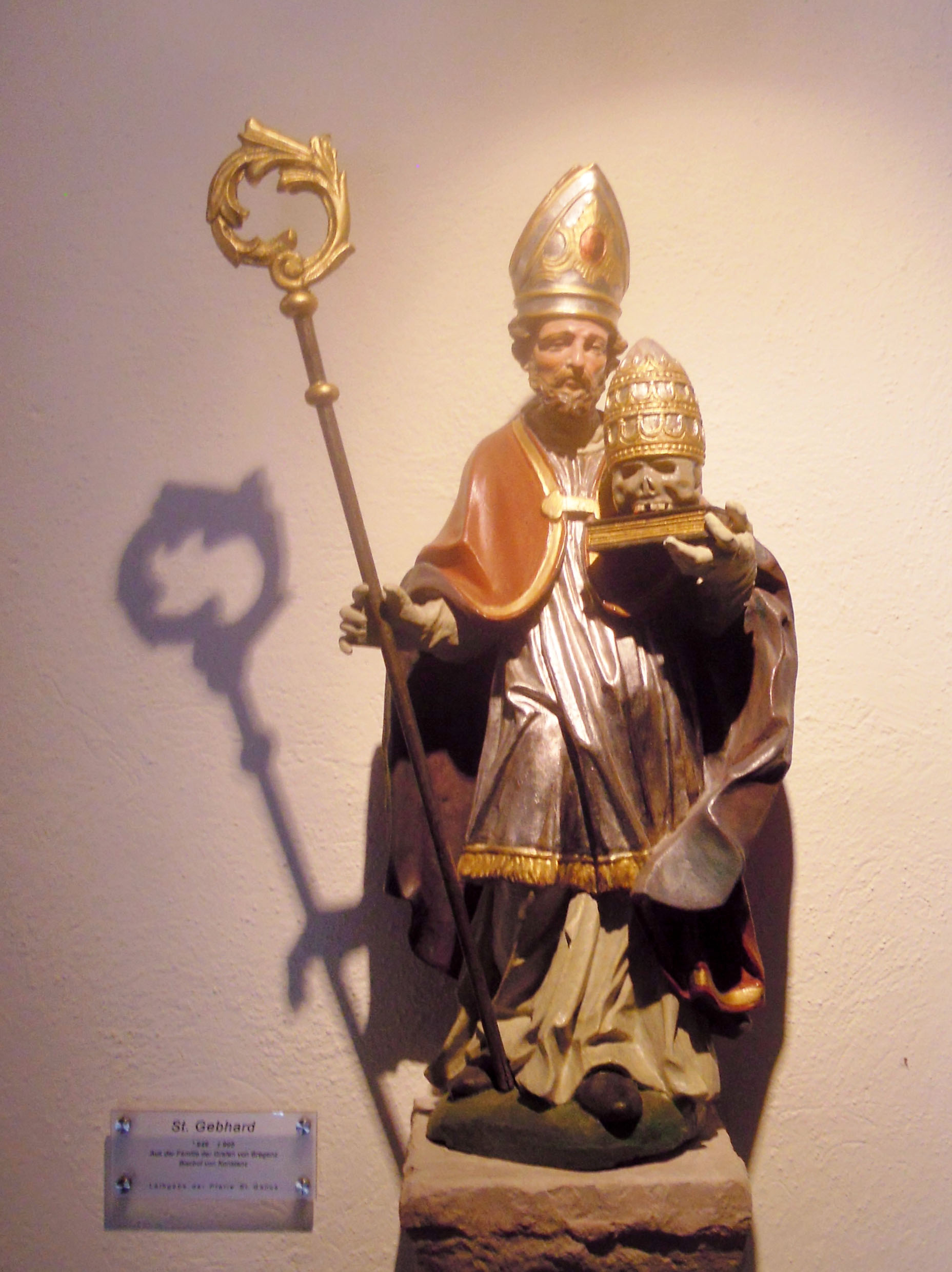 Diese Darstellung des Hl. Gebhard steht als Leihgabe von St. Gallus im Restaurant-Aufgang auf dem Gebhardsberg.
