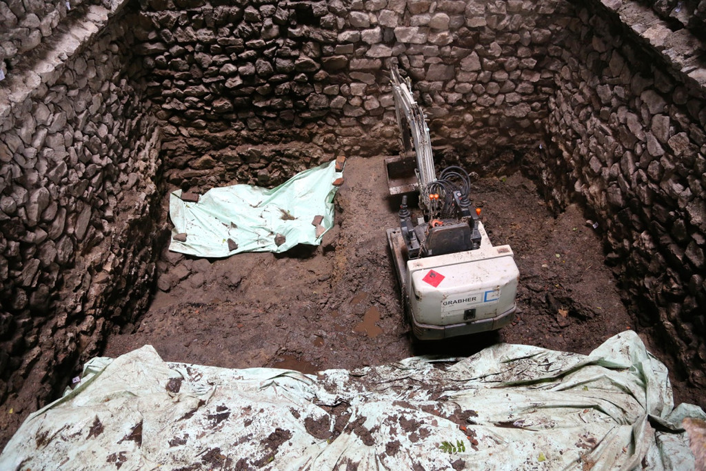 Im Auftrag des Bundesdenkmalamt fanden umfangreiche Grabungen im Burginnern mit Hilfe eines Kleinbaggers statt.