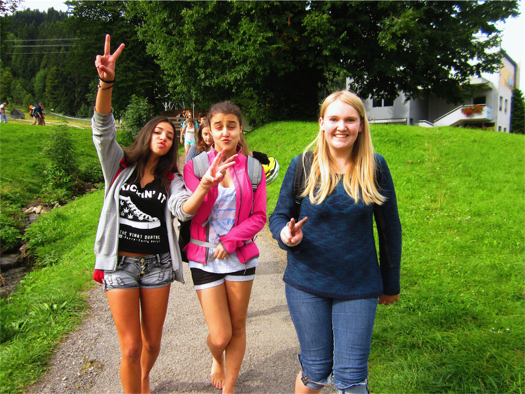 Elmedine, Xenia und Vivien auf dem Barfußweg