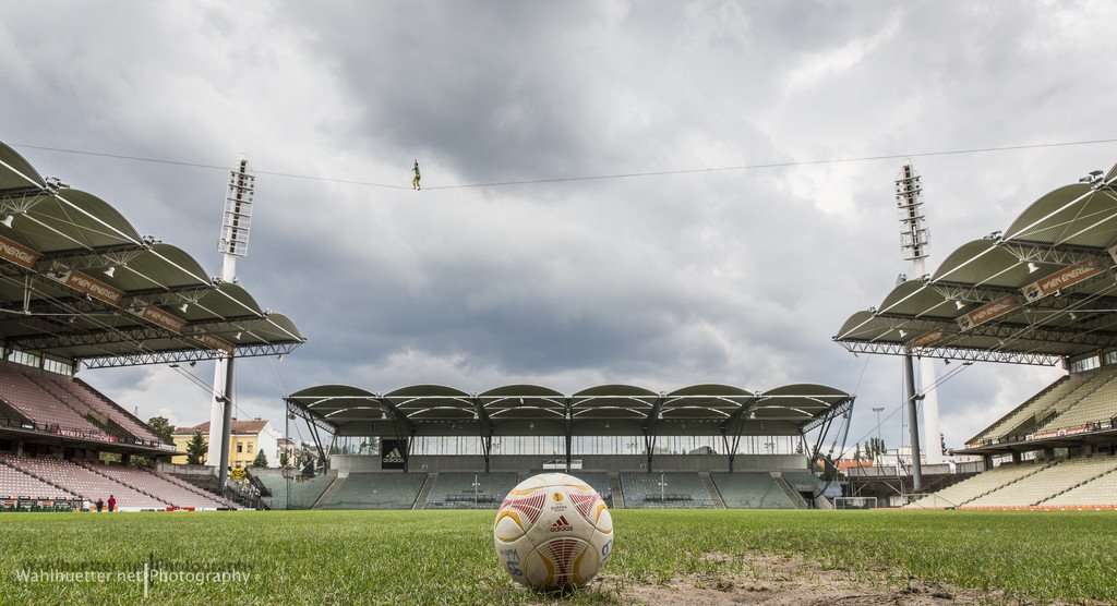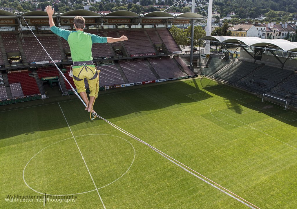Slackliner überquerten das Hanappi-Stadion in Wien
