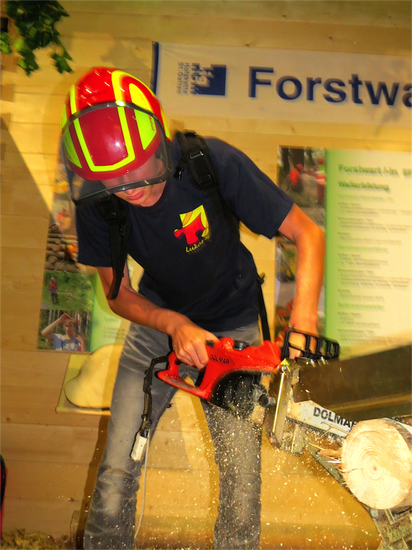 Lukas durfte mit der Motorsäge probieren