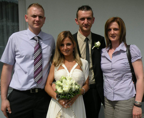 Das Brautpaar mit den Trauzeugen.