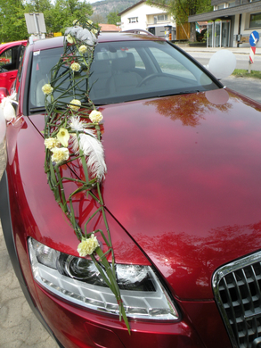 Das festlich geschmückte Auto.