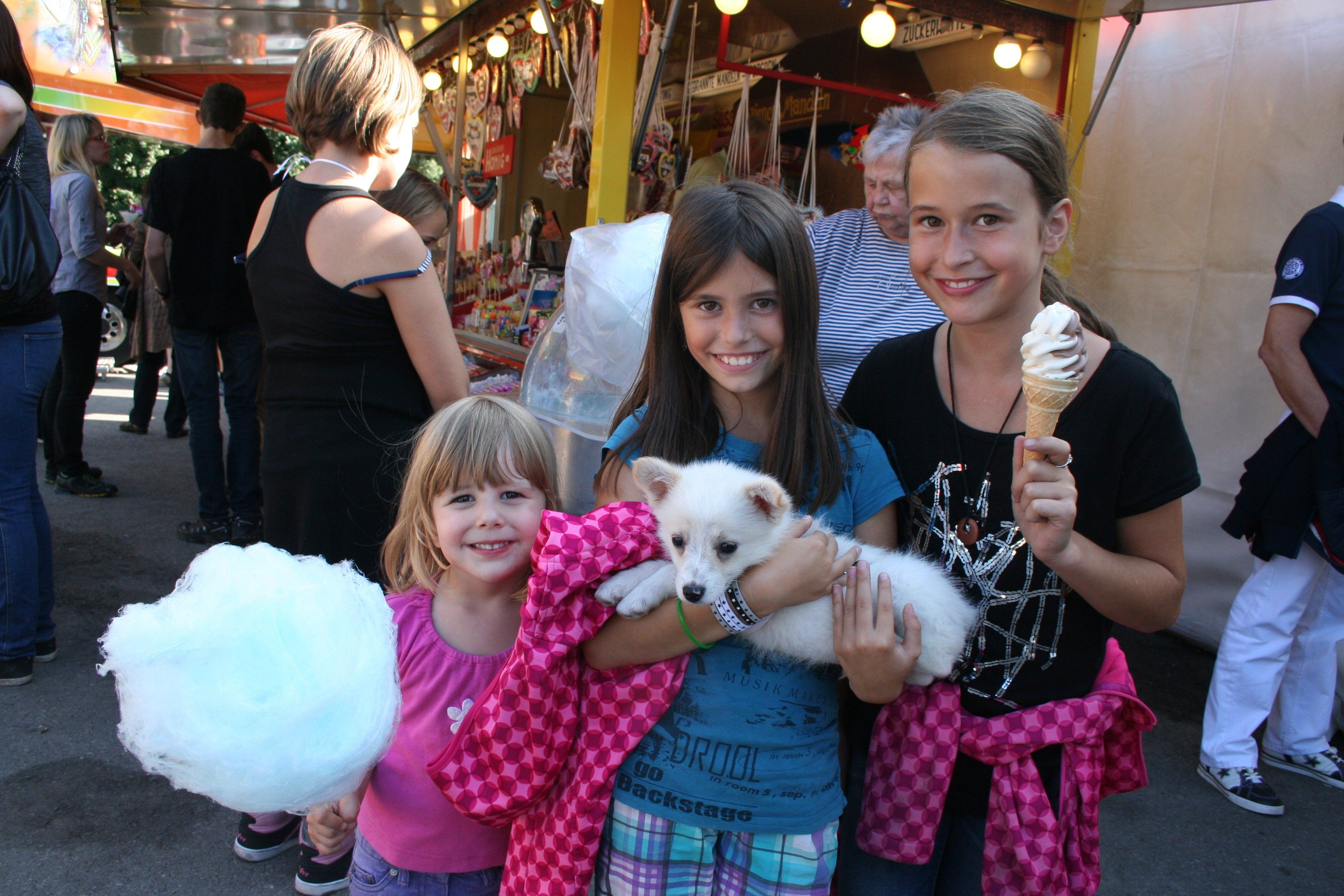 Sarah, Anika und Kiara mit Balu.